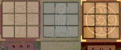 mozaiky na podlaze (nejdříve šesticípou hvězdu, pak dítě, muže, ženu,
