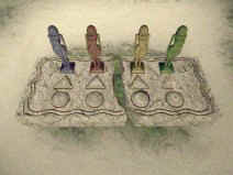 (je třeba ho použít na hlavu sochy), stiskněte opět hvězdu a prostupte dřevěnými