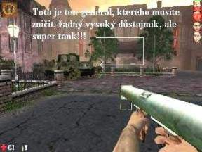 V této misi je vaším úkolem zničit fašistického Generála a pobít co nejvíce nacistů a tak umožnit spojencům jejich další příští invazi. Hned na začátku vám prozradím, že nějakého vysokého nacistického důstojníka byste v této misi marně hledali. Generál je totiž krycí název spojenců pro fašistický super tank, který musíte zlikvidovat. Takže se do toho ihned pustíme. Jděte rovně dopředu, pokračujte přes most, zničte fašistický tank před vámi. Kolem zničeného tanku pokračujte dopředu, můžete si nasednout do osobního auta vlevo před vámi, nebo auto zničit a pokračovat dál pěšky. Před vámi zničte další nacistický tank, na křižovatce se dejte doprava, pokračujte po klikatící se cestě dopředu, dále přes most kolem větrného mlýna a kulometného hnízda dále, vpravo zničte další německý tank a pokračujte vpřed. Tak jste si vyčistili od hakošů únikovou cestu z této mise. Nyní se vraťte na křižovatku, kterou jste už minuli, zabočte doleva a dostanete se tak k budově nacistického štábu. Před ní stojí onen Generál, fašistický super tank. Zničte ho přesnými zásahy z pancéřové pěsti, budete muset vystřelit třikrát. Tak jste splnili váš hlavní úkol pro tuto misi. Teď si můžete s klidným svědomím nasednout do nacistického štábního osobního auta, vycouvat a vrátit se po cestě zpět. Na křižovatce zatočte doprava a na konci doleva. Ujíždějte dopředu jako s větrem o závod a tak dojedete zcela bezpečně až na konec mise.