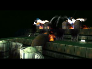 energetické veže so zelenou pologuľou navrchu. Potom sa zrúti obrovská vesmírna