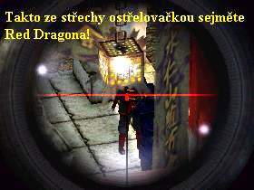 Ocitnete se u svého auta, utíkejte tedy ulicí dopředu, zabočte do druhé ulice vpravo, projděte jí až na konec. Přejděte přes silnici na druhou stranu, potom projděte úzkou uličkou mezi dvěma červenými domy až k výtahu, kterým si vyjeďte nahoru, kde si vystupte. Nyní jste na střeše domu, spatříte po sobě dvě krátké animace, v nichž přijedou auta, z kterých budou vystupovat gangsteři. Z toho druhého auta vystoupí i Red Dragon, vašim úkolem ho bude ze střechy odstřelit zaměřovací puškou. Jděte tedy doprava ke zdi, připravte si tuto pušku a jakmile zahlédnete Red Dragona přicházet k sošce v altánku (poznáte ho podle kimona s červeným drakem na zádech), pomocí zaměřovače ho odstřelte. Pak ještě na vás zaútočí z vrtulníku další gangster, rychle ho pošlete k čertu. Utíkejte k výtahu, sjeďte dolů a stejnou cestou, po které jste se dostali na střechu, utíkejte zpět ke svému autu. Tím tato mise končí.