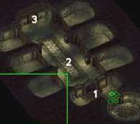 2. Tyto dveře vedou do malého chrámu boha Helma, hlídaného několika pavouky. Poté, co je zneškodníte, seberte pergamen a řádně si ho pročtěte. Pomocí Helmova znaku (později najdete v SZ věži) si otevřete dveře do krypty.