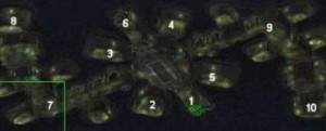 8. Zde je mrtvý vězeň, jeho lebka slouží k otevření dveří (6).