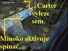 hlídač, projde posledními dveřmi, rychle se přepněte na Cartera (ten jediný
