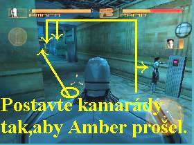 se všichni u skleněné výplně zdi, rozstřelte ji, přepněte se na Ambera,