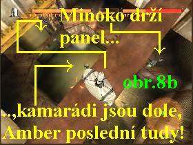 Uzdravte se u stanice UPA, pokračujte chodbou doleva, propadne se podlaha a z otvoru