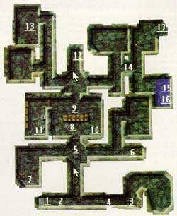 9. K tomu, abyste se dostali k truhle uložené ve středu této místnosti, si budete muset nejprve vyřešit spory s partou vodních elementálů, kteří se vám v tom pochopitelně snaží zabránit. Háček je pouze v tom, že zabijete-li jakéhokoliv z nich, objeví se na jeho místě (nebo poblíž) další, čili vlastně ani nemá cenu je zabíjet, protože za to nezískáte žádné zkušenosti navíc. Ovšem zabijete-li toho úplně posledního nejblíže truhle, kouzlo přestane účinkovat a vy ji následně budete moci prohledat.