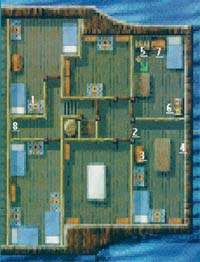 6. Toto je místo, kde druid asi přebýval. Prohledejte truhlu. V knihovně můžete nalézt knihu receptů a dokument, ale pouze v případě, že vaše postava úspěšně projde testem postřehu. V šatně najdete boty, róbu, triko a další neužitečné hadry.
