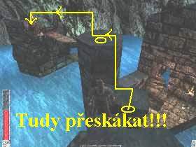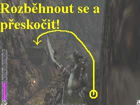 výstupek vpravo. Odtud si vyskočte vý, přeskákejte po dalích výstupcích
