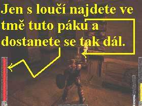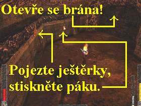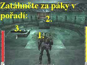 dolů do místnosti k páce, za kterou zatáhněte (pozor vpravo za dveřmi je