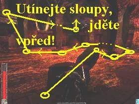 zahněte doleva, u pičatých kůlů si vyskočte na skalní výstupek vpravo,