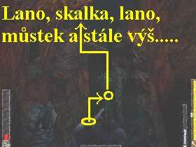 soutěskou jděte stále vpřed, v místnosti naskočte na řetěz a vyplhejte