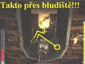 druhou uličkou doprava a do druhých dveří vlevo sekněte mečem. Napravo