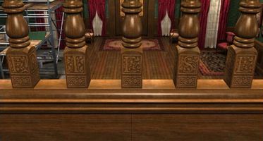 choď dole do vstupnej haly. Všimni si orlie hlavy na zábradlí v prízemí, jednej