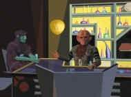 vás – nad Quarkovým barem u simulátoru. Čtvrtý Lykotian čeká v chodbě