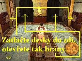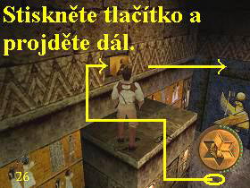 tlačítko, projděte dál a vlevo si vyskákejte po kamenných kvádrech nahoru. Vlevo