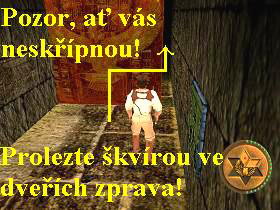 lehajícími z otvorů ve zdi, odbočte doleva a zopakujte si to jetě jednou. Na