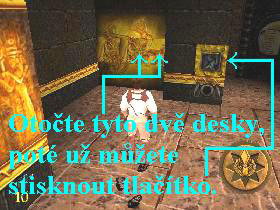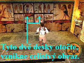 podstavec, přetočte na obraze dvě spodní desky, tak se propadne sfinga a otevře