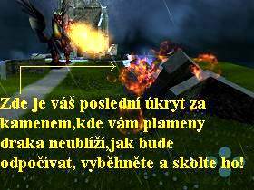doprava a rychle se schovejte za kamennou zídku. Všimněte si, že drak po vás