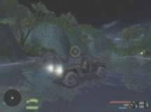 Na pobřeží doběhněte do jednoho z krajních domků, ve kterém se nachází noktovizor. Nastupte do džípu, který od nynějška opatrujte jako oko v hlavě. Bude se vám velmi hodit. Jeďte po cestě (přijíždějící člun a odstřelovače ignorujte), dokud nedorazíte k prvním vojákům. Ti vám přes cestu položili kmen stromu. Za tuto drzost si zaslouží zastřelit. Po jejich likvidaci vystupte a jděte k řece. Na druhém břehu u domku je voják s raketometem, kterého se urychleně zbavte odstřelovačskou puškou. Nyní nasedněte zpět do auta (obrázek) a všechny nepřátele postřílejte kulometem.