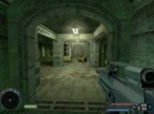Svezte se dolů a vejděte do haly, kde už poněkolikáté probíhá nelítostný boj. Ignorujte ho a rychle běžte do severovýchodního rohu místnosti. Vlevo jsou malé dveře a vpravo velká vrata. Vstupte do malých dvířek, zastřelte dva vojáky a tím se dostanete mimo bojové pole. Pokračujte chodbou a doběhněte nahoru na plošinu. Odtud máte výhled do další haly s vojáky a mutanty. Všechny postřílejte a vstupte do místnosti se čtyřmi vodními nádržemi. Na stěně naproti plošině, kde byli vojáci, je ventil, kterým otočte. Místnost se naplní vodou - setrvejte na hladině (nebo se o to alespoň pokuste) a proplavejte otvorem ve stropě. Zde projděte šachtou, dokud se nedostanete na částečně zatopenou chodbu. Zde na vás čeká raketometný mutant, kterého rychle zastřelte - například brokovnicí (obrázek).