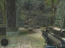 Nyní máte jít do chatky nahoře na kopci, kde na stole leží dalekohled (vaše druhá ruka). Doběhněte tedy k němu a vezměte si ho. Sejděte opatrně dolů a dalekohledem nasnímejte celou oblast (na radaru vám přibylo trochu teček J). Doplavte na druhý břeh z pravé části a připližte se ke věži na kopci (klávesa pro zalehnutí). Na věži hlídkuje voják - můžete ho buďto zastřelit ze zdola nebo vyšplhat po žebříku když se otočí zády k vám a zastřelit ho až nahoře. Vystřelte samopalem přímo k základně, čímž si přivoláte další bandu nepřátel, které postupně z věže zlikvidujte (skvěle se na to hodí Falcon.357). Až bude klid, sešplhejte po žebříku zpět na zem a jděte k táboru. Možná se zde bude ještě jeden nebo dva vojáci skrývat, tak je zastřelte a vejděte do stanu s nápisem Head Quarters (velitelský stan) - je to ten první od břehu. Ze stolu si vezměte magnetickou kartu a otevřete si s ní dveře ve zbrojnici (Armory), kde se můžete trochu dovybavit. Pokud se chcete pokochat enginem hry, můžete rozstřelit zábranu, za kterou je nádrž s benzínem (a ta se elegantně dokutálí až dolu do tábora), můžete ustřelit boxovací pytel (a ten pak spadne na zem) a můžete rozstřelit druhou nádrž s benzínem (která hezky exploduje). Nakonec doběhněte k bugině a nastupte do ní (klávesou [F1] si můžete přepnout perspektivu - viz obrázek).