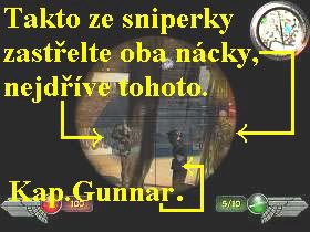 nimi postřílejte německé vojáky, vstupte na první lávku vpravo, odbočte