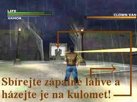 V úvodní animaci bandité zastřelí uniformovaného policajta, takže jim to v reále „za odměnu“ hezky spočítejte. Poté se vydejte do leva ulicí, zlikvidujte několik banditů, kousek dál vpravo je lékárnička, na druhé straně seberte pancíř. Přejděte na levou stranu na chodník, tak se spustí animace, po ní se schovejte za zeď. Známým nakukováním a auto zaměřováním se zbavte dalších otrapů, za vámi je další lékárnička. Přeběhněte na druhou stranu, spatříte další animaci, ve které dojde k přestřelce darebáků s policajty, protože jste museli před chvílí zahodit zbraně, pošlete vašeho psa na prvního darebáka, zakousne ho a donese vám jeho zbraň, takže pobijte ostatní bastardy před vámi. Pak vykoukněte a oddělejte poslední parchanty na schodech, vlevo je lékárnička, na silnici druhá, vyběhněte po schodech nahoru, po skončení krátké animace se ocitnete u vchodu do herny. Pokračujte dopředu, seberte pancíř, seběhněte dolů po schodech, opět se spustí animace, po ní zlikvidujte před vámi několik darebáků a vstupte do herny. Zde proveďte důkladnou čistku, potom přejděte k drátěné kleci a klikněte na červený čtverec, tak vám bude chtít chlápek z druhé strany otevřít dveře. Napadnou vás ale další nepřátelé, postřílejte je, seberte po nich lékárničky a klíč, pak vstupte do klece. Po skončení animace posbírejte v kleci vše co můžete, seberte i zbraně ze skříňky, nečekejte, až se objeví policisté, vyběhněte ven a utíkejte doprava po schodech nahoru ke dveřím, kterými projdete. Znovu se spustí animace, po ní se schovejte za zeď a likvidujte bandity, je jich před vámi jako much, jsou i na střeše (obr.5), ty sundejte sniperkou. Vpravo za barikádou je několik dalších darebáků, zbavte se jich, naproti u náklaďáku je lékárnička, jakmile ji seberete, máte na krku nové dva útočníky, jděte uličkou vpřed, na prvního zákeřníka za bednou pošlete psa a za druhou bednou druhého odrovnejte z pistole, na konci projděte bránou. Objeví se policajti, takže budete muset i se psem zdrhnout, vstoupíte do šantánu, ale pozor, holky které vás zvou dál nejsou tak upřímné, jak se tváří. V reále tedy ihned zlikvidujte dva chlápky z ochranky pěstmi a kopanci, pokračujte doleva a zbavte se dalších otrapů. Jděte doprava, v uličce na pravé straně z levých dveří vyleze další gauner, mlaťte ho tedy hlava nehlava, děvčete uvnitř si nevšímejte. Vydejte se k paravánu, u něj odbočte doprava, vstupte do protějších dveří, kde zlikvidujte dva vagabundy. Vraťte se do chodby, před vámi vlevo za dveřmi je další darebák, pokračujte do chodby, kde pobijte další pasáky, dveří označených červeným čtvercem si zatím nevšímejte. Vraťte se zpět, prohledejte saunu a zbylé místnosti, naleznete další lékárničky, teprve nyní se vraťte zpět ke zmíněným dveřím a zkuste vstoupit. Spustí se ale animace, v níž budete muset na parketu porazit především bosse Horsta, jakmile se vám to podaří, spustí se další animace, v ní získáte pistole a ocitnete se v místnosti, kde zastřelíte chlápka a pohovoříte si s dívkou jménem Eve. V reále v místnosti seberte ze země pušku, brnění patří jako uzdravující prostředek Eve, ale ta zdraví zatím nepotřebuje. Vyjděte ven z místnosti, na chodbě vlevo zastřelte dvě povětrnice, popojděte k Eve a následujte ji, odvede vás na parket, odkud musíte postřílet nyní již ozbrojené prostitutky, přičemž musíte ochránit Eve, neboť pokud by vám zemřela, končíte. Sama Eve sice střílí ze samopalu jako zabiják, ale sama se přesile neubrání. Jakmile zlikvidujete poslední ženštinu, odvede vás Eve na ulici, kde musíte bojovat s gangstery, likvidovat je a znovu chránit Eve. Tak budete společně postupovat dál, likvidovat gaunery až narazíte na bosse jménem Fat Chow, jakmile se ho zbavíte, spatříte další hezkou animaci a postoupíte do další kapitoly.