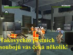 Úvodní animace tedy začíná o sem měsíců později ve vězení, po jejím skončení se ihned utkáte se čtyřmi spoluvězni, kteří si na vás došlápnou. Poté, co se jich zbavíte, prohledejte dole všechny otevřené cely, jsou tam lékárničky, nějaké jsou i ve vyšších patrech, kam se dostanete po železných schodech. Dole pokračujte dál doleva, zde musíte zlikvidovat další útočící vězně, z jednoho z nich vypadne karta, kterou samozřejmě zvedněte. Vydejte se dál vlevo, kartu použijte na mříž, projděte jí, hned nato i druhou, pak vstupte do dveří vlevo, zbavte se útočníka. Jděte doprava, vlevo pod schody je lékárnička, vystoupejte po schodech, odbočte doleva. Otevřete si mříže, za nimi odbočte vlevo, vpravo ve slepé uličce je lékárnička, pokračujte chodbou dopředu, zbavte se dalších vězňů. Na konci chodby odbočte doprava na další schody, za nimi vstupte do vrat vpravo, spustí se animace, po ní se ocitnete v tmavé chodbě. Jděte doleva a odbočte vlevo na malé schůdky, vstupte do dveří s nápisem WORKSHOP. Ocitnete se tak v dílnách, nejdříve zlikvidujte celý „uvítací výbor“, seberte kartu, která vypadne z jednoho poraženého. Pak posbírejte všechny lékárničky, vstupte do malých dveří na konci místnosti vlevo, spustí se animace, po ní se ocitnete zpět v dílně. Pozabíjejte další vězně, kteří se zde znovu objevili, získáte tak čtyři krabičky cigaret. Projděte nazpět dveřmi, kterými jste sem původně vešli, pod schody odbočte doleva, hned potom doprava a projděte mříží před vámi, odbočte vpravo a hned po schůdcích vlevo vejděte dveřmi do místnosti s nápisem GYMNASIUM. Ocitli jste se ve vězeňské tělocvičně, nejdříve jděte dozadu vlevo k boxerovi, stoupněte si na schůdky označené zelenou šipkou a stiskněte akční tlačítko. Tak začne rohovnický zápas ve volném stylu, jakmile borce porazíte, získáte další krabičku cigaret a můžete přistoupit k posilování uprostřed tělocvičny, kde budete mlátit do cvičného balonu. Na tuto i další poslední disciplínu vám doporučuji nastavit si citlivost myši na maximum, nebo používat místo levého tlačítka myši alternativní klávesu (pravý CTRL). Stiskněte akční tlačítko, pokračujte dál a prohlížejte si instrukce, tak zjistíte co máte dělat, abyste i v této disciplíně uspěli. Vaším úkolem zde je v tomto „zápase“ s míčem nasbírat nejméně 150 bodů a to ve čtyřech kolech. Stiskněte tedy nejdříve auto zaměření a potom střelbu, tak se začne prodlužovat modrý ukazatel úspěšných zásahů zleva doprava, který postupně žloutne, v pravidelném rytmu střídejte auto zaměření s tlačítkem pro střelbu a tak tento úkol splníte, za což obdržíte další krabičku cigaret. Čeká vás teď poslední, zato však nejtěžší úkol, zvedání činky. Přistupte tedy k poslednímu muži vpravo, stiskněte akční tlačítko, prohlédněte si postupně tabulky s instrukcemi a můžete začít. V prvním kole musíte dosáhnout výkonu 135 kg, v druhém 225 kg a ve třetím potom 315 kg. Na ukazateli máte dvě lišty, ta vlevo má uprostřed čtvereček, klikáním na tlačítko pro střelbu musíte vehnat červený indikátor do tohoto čtverce, pokračovat v klikání na zmíněné tlačítko, ale už v jiném rytmu, tak se v pravé lište začne zvedat další indikátor a jakmile dostoupí vrcholu a zabliká, rychle klikněte na automatické zaměření, tak činku pozvednete. Opakujte celý postup znovu, tak činku nadhodíte a zopakováním celého postupu dosáhnete potřebného výkonu a máte splněný úkol prvního kola. Totéž musíte zopakovat ještě dvakrát tak, abyste splnili dva náročnější váhové limity, jakmile se vám to podaří, jsou všechny úkoly v tělocvičně splněny, dostanete další krabičku cigaret a můžete se dveřmi, kterými jste sem přišli vrátit zpět na chodbu. Na chodbě vás napadne vězeň, kterého zlikvidujte a seberte mu kartu, která z něj po jeho smrti vypadne, tu použijte na dveře od schodů vpravo, označené jako CELL BLOCK C. V chodbě odbočte vlevo a seběhněte ze schodů, zlikvidujte několik útočníků (vpravo mezi regály je lékárnička), postupujte vpřed chodbou, na jejím konci projděte mřížemi vpravo. Za nimi seběhněte doprava ze schodů, vpravo pod nimi naleznete lékárničku, zbavte se dalších trestanců, projděte do protisměru dveřmi označenými CELL BLOCK C. Za nimi si otevřete mříže vpravo a vejděte do protějších dveří. Po krátké animaci projděte dalšími mřížemi, v místnosti zlikvidujte houfec nepřátel a posbírejte po nich krabičky cigaret, prohlédněte všechny otevřené cely a to i v patrech, najdete tam lékárničky pro doplnění zdraví, pak sejděte až dolů a dejte se doprava, i zde musíte pozabíjet několik trestanců a posbírat po nich balíčky cigaret. Poté se vraťte a přistupte k vězni sedícímu na židli, šipka která ho označovala a byla červená, musí být nyní zelená. S ním si teď musíte změřit třikrát po sobě síly ve stolní silové hře, známé vám určitě jako „páka“. Princip hry je podobný, ne-li přímo stejný jak v tréninku v tělocvičně. Tlačítkem pro střelbu musíte kurzor na horní liště udržovat ve středu, tedy ve čtverci klikáním a jakmile se spodní lišta zaplní duhovým ukazatelem a zabliká (obr.4), pak klikněte na auto zaměření a zvítězili jste. Toto si zopakujte ještě dvakrát a pokud zvítězíte, obdržíte krabičku cigaret a vraťte se k mřížím, kterými jste sem vešli, projděte dveřmi, pokračujte dál přes další mříže, potom přes dveře vlevo do chodby a dejte se do protisměru. Vlevo pod schody seberte lékárničku, vyběhněte po schodech nahoru a projděte mřížemi vlevo. Odbočte do chodby vlevo, p