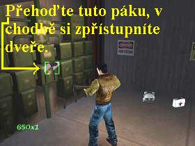 V úvodní animaci se setkáte v doprovodu vašeho psa s mužem, který před vámi však uteče. Jděte tedy k vratům, za kterými zmizel, tak se spustí animace, v které vyběhnou z branky za vámi houfy vojáků, které samozřejmě postřílejte. Za bednami naproti vratům najdete klíč, za poslední bednou od vrat vlevo je pancíř. Nyní už tedy můžete vstoupit do vrat, postřílejte vojáky, posbírejte lékárničky, na nepřátele nahoře lze použít známé výbušné láhve. Po železných schodech vystoupejte nahoru, oběhněte kolem zdi doprava, po jednom ze zabitých vojáků nahoře zůstal na zemi klíč, seberte ho a u dveří naproti klikněte na akční tlačítko. Tak se dole otevřela vrata, z kterých vyběhlo několik vojáků, postřílejte je tedy, seběhněte po schodech zpět dolů a projděte vraty vlevo. V animaci spatříte muže, který před vámi hned na samém začátku utekl, v reále pak postřílejte po celém okolí všechny vojáky, vlevo na lodi je pancíř a lékárničky, pokračujte po lávce dopředu a na jejím konci se pokuste vstoupit vpravo do vrat. Čeká vás již dobře známá mezihra s otevíráním zámku, postup jsem vám již popsala, takže jakmile si odemknete, v místnosti pozabíjejte vojáky, vyběhněte vlevo nahoru po schodech, oběhněte rampu a na konci seberte klíč. Vraťte se po schodech dolů, odbočte do protisměru a vstupte do malých dveří vlevo, tak se ocitnete na volném prostranství, kde zlikvidujte všechny nepřátele, ale pozor, pár jich je i nad vámi. Popojděte dopředu a zkuste projít dveřmi na konci vlevo, opět si budete muset odemknout pomocí mezihry se zámkem. V místnosti pak pobijte vojáky, pokuste se projít dveřmi, tak se vyřítí další nepřátelé, které zlikvidujte. Po poslední mrtvole seberte klíč, zastřelte i vojáky v patře, pak projděte protějšími dveřmi v přízemí vlevo. Opět postřílejte všechny vojáky, ty žluté je dobře pustit více k tělu, na spojovacím můstku přes loďku seberte kartu, vraťte se zpět a stiskněte tlačítko u dveří vlevo. Objeví se další vojáci. Zatněte jim tipec, pokračujte dál přes spojovací můstek, odbočte doprava a vstupte do protějších dveří mírně vpravo. V místnosti proveďte čistku, posbírejte lékárničky a seberte klíč, poté projděte dveřmi. V animaci k vám přiletí vrtulník, pozor na jeho kulomet, kryjte se a zlikvidujte výsadek, který se z něj spustil dolů. Nyní ovšem musíte sundat i vrtulník, zaměřte ho raději ručně (F) a šijte do něho tehdy, když zelený kurzor vaší zbraně na vrtulníku zčervená, tehdy je zranitelný (obr.8). Jakmile vrtulník vybuchne, přistupte k vratům a budete upozorněni, že jsou velice zesílena. Vraťte se tudíž zpět k vysokozdvižnému vozíku, aktivujte ho, tento se rozjede a poškodí vstupní roleto. Škvírou po pravé straně rolety se protáhněte do místnosti, kde pobijte několik parchantů, jeden z nich má u sebe kód kartu, kterou aktivujte spínač na zdi, tak si otevřete dveře nahoře nad schody, ale vynoří se několik zběsilců, které pošlete k čertu. Vystoupejte po schodech nahoru, sejměte vojáky, kteří vyjdou ze dveří, pak projděte dveřmi a hned nato druhými, postřílejte seshora nepřátele. Seběhněte po schodech dolů, pokračujte po malých šikmých plošinkách, vyběhněte doprava malé schůdky a zbavte se dalších nepřátel. Vlevo zkuste malým tlačítkem otevřít vpravo od tlačítka dveře, dozvíte se ale, že k otevření vrat je zapotřebí zatížit plošinu před tlačítkem vahou 350 pondů, tolik ale nevážíte. Postřílejte tedy kolem sebe vojáky, ať vám nezastřelí zajatce, jednoho chyťte pod krk (E) a dojděte s ním na plošinu před tlačítkem, jakmile červený ukazatel u vrat zezelená, picněte zajatce a rychle projděte vraty. Na konci pobijte nepřátele, projděte pod roletou (sama se vám nadzvedne), v místnosti proveďte důkladnou čistku, posbírejte lékárničky a pancíře (dále vás už nebudu upozorňovat na výskyt těchto předmětů, prohledávejte pečlivě všechny místa, jste už zdatní a ostřílení bojovníci), po jedné z mrtvol seberte kód kartu a na druhé straně místnosti ji použijte na spínač. Zlikvidujte další nepřátele, vyběhněte nahoru po schodech a na druhém konci rampy mezi bednami projděte ke dveřím, do kterých vstupte. Projděte chodbou, postřílejte vojáky a vstupte do dveří za rohem, zastřelte vojáka v chodbě, seberte mu klíč a otevřete si protější dveře, pak projděte i druhými. V místnosti pošlete do pekel několik nepřátel, vstupte do dveří vzadu vpravo, na rampě a pod ní pobijte nepřátele, pokračujte do chodby vlevo. Na konci chodby postřílejte seshora z rampy nepřátele, pokračujte do protějších dveří, místnost zbavte vojáků, z jednoho vypadne kód karta. Použijte ji na dveře za rohem, pokračujte chodbou vpřed, odbočte do další chodby, vyběhněte po schodech nahoru, po druhých dolů a nyní se utkáte v souboji s Longshoremanem X. Poté, co se tohoto bosse zbavíte, spustí se velice dlouhá, zato však výmluvná animace, ke které není zapotřebí přidávat jakékoliv komentáře. Po jejím skončení na vás čeká opět mezihra, tentokráte budete uvázáni za nohy ke stropu a pověšeni hlavou dolů k barelu, naplněném vodou. Budete třikrát po sobě v prodlužujících se časových intervalech spuštěni do vody a nesmíte se utopit, tedy je nutné přestat dýchat. Toho dosáhnete tak, že budete střídavě rychle, ale pravidelně klikat na automatické zaměření (pravý SHIFT) a tlačítko pro střelbu, zde opět místo levého tlačítka myši doporučuji používat pravou klávesu CTRL, pokud tento úkol zvládnete, v animaci vás osvobodí váš oddaný hafan. Z chodby vejděte dveřmi do místnosti, kde vás přepadne horda děln