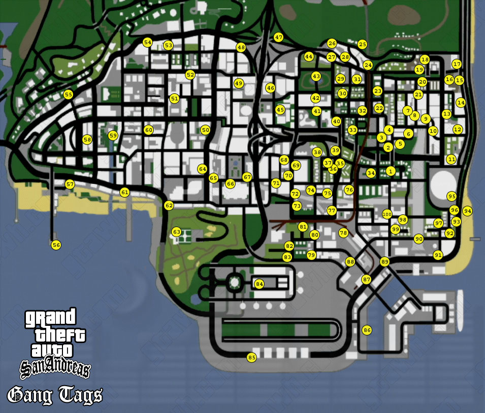 spreyové Gang Tags. Nasedněte do auta a vydejte se podle radaru na určené místo.