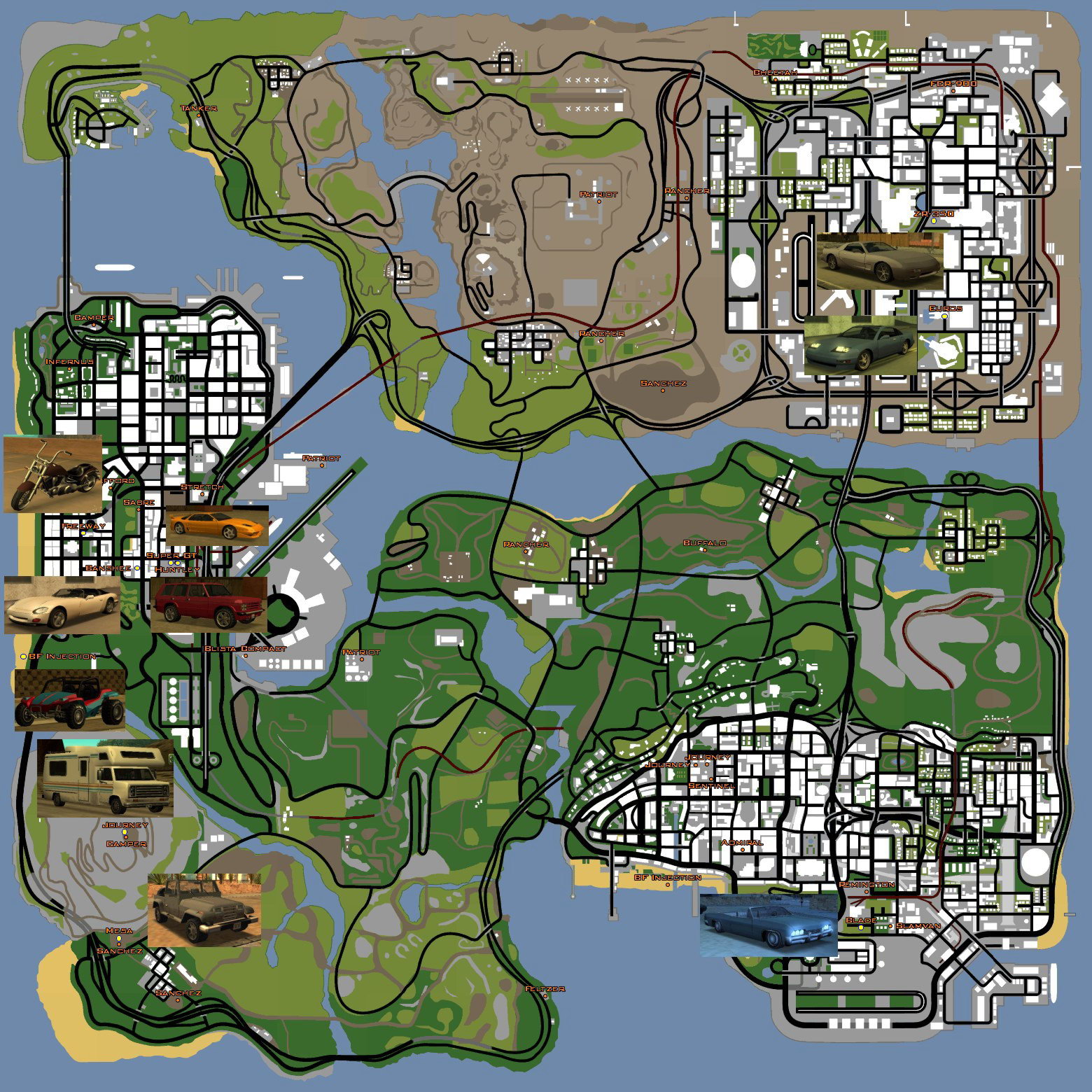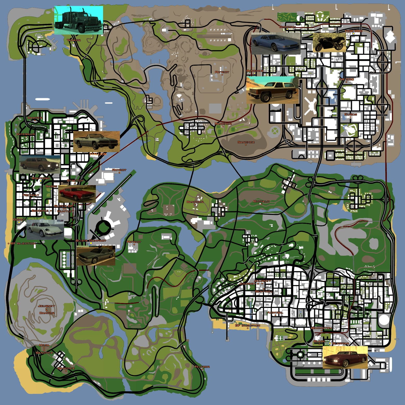 jeep (Ranger), FBI jeep (FBI truck, FBI rancher), tank (Rhino), nebo armádní
