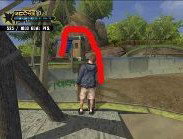 Obrázek ukazuje místo s rampou, kde udělejte spin dolů na rampu a s tou
