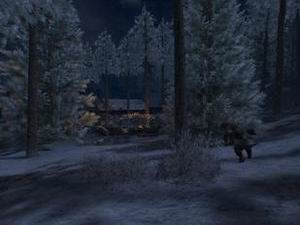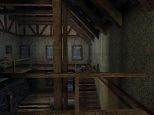 Po eliminaci se dejte dle kompasu do budovy, vyčistěte horní patra, pak pokračujte otevřenými dveřmi dál k potoku.