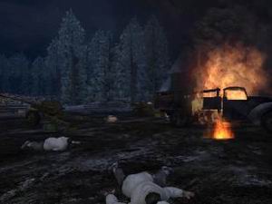 Projděte temným lesem plné min, dostanete se ke křižovatce (obr. 7), kde je další nepřátelské stanoviště, zabte je všechny, pak se dejte s vaší skupinou k silnici (obr. 8). Tam číhejte na příjezd konvoje, až přijede tak je zabte všechny. Vaše naděje však zhatí tank, jediný bazukář ve skupině to slízl, takže Moody vám nařizuje sebrat bazooku a zničit tank. Po uklidnění situace se dejte zpět ke křižovatce.