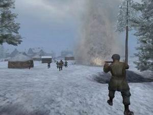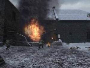 Spolu s Moodym se dejte na cestu, až se dostanete do místa, kde se pokoušejí němci prorazit obranu (obr. 4). V jednom zákopu najdete bednu s bazookou, seberte a zničte přijíždějící tank, pak se přesuňte k dalšímu zákopu, kde najdete další munici do bazooky a zničte další tank, pak opět přesun k dalšímu zákopu a totéž, po chvílí již přijíždí americké Shermany, které již vytlačí nepřátele z oblasti.