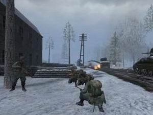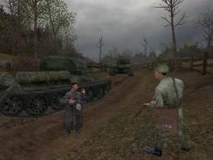 Zkušený velitel Anatov vás seznámí se situaci (obr. 1), spolu s nim se dostaňte do města. Držte se podél tanku, jinak vás sejmou kulomety (obr. 2). Ve městě zabte všechno co se dá, avšak budete zastavení sniperem, dostanete rozkaz ho sejmout. Sniper je schovaný ve věži (obr. 3), cesta dovnitř nevede, takže ho musíte sejmout zdola.