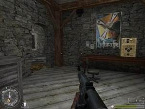 Následujte skupinu, dostanete se do místa, kde k vám přiběhne kulometčík a podá informaci o nepřátelské pozici, spolu s Moodym se dostanete přes ohradu, avšak nepřítel použije světlici, takže jste na ráně jejich kulometu, zničte nejbližší kulometné hnízdo a spolu s bandou se probojujte ke statku (obr. 4), prozkoumejte budovu (obr. 5), kde najdete německého důstojníka. Proběhne výslech vězně.
