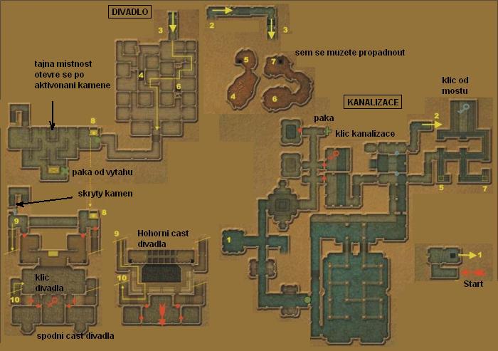 kde nalezete klíč kanalizací (obr.1). Klíčem si odemkněte mříže a objevíte se v