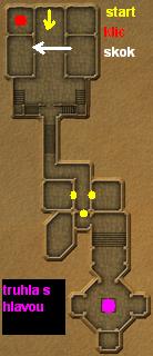 nejdál. V hale sou po krajích takové malé chodby s ohnivými hlavami hlídající