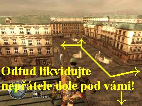 vás útočící bastardy, postřílejte i ty nepřátele, skryté pod střechou