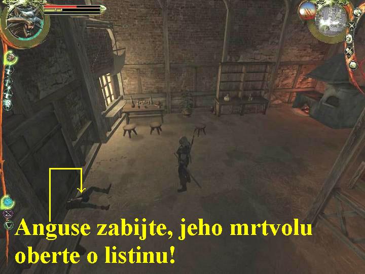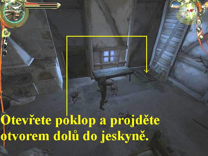 po schoditi nahoru, zabijte ílence a vylezte ven oknem. Spustí se animace,