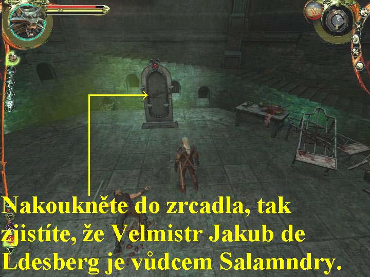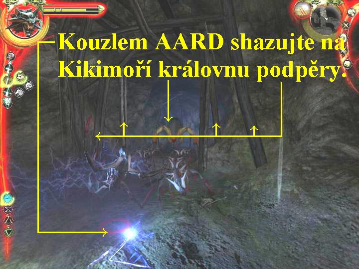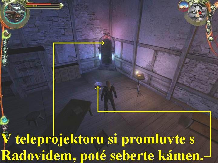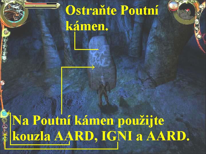 nahoru mezi kamenné sloupy, tam si opět v animaci pohovoříte s Velmistrem,