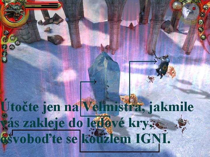 ledové kry, ze kterých se vyprostíte pomocí kouzel AARD, nebo IGNI. Vstupte
