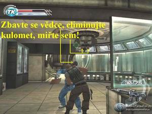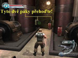 samopal, seběhněte vpravo po schodech dolů a postřílejte všechny vojáky,