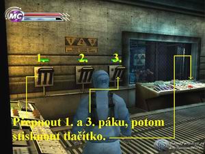 přehoďte obě dvě páky, nahoře jste u dalších dveří vypnuli laserovou ochranu. Vraťte se poté