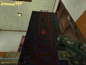 ebřík, po kterém musíte vylézt s bazukou v ruce.