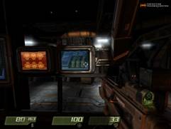 nahoru ke dveřím se zeleným světlem. Pobijte na chodbě nepřátele a pak výtahem