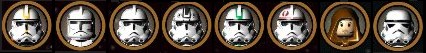Na prvním obrázku je velitel Cody, na druhém klon zep. 2, další jsou obyčejní