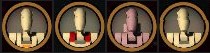 se sosákem) a Ubesany (hnědé čtvercaté helmy). Tyto postavy nemohou ve